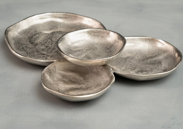 12" | Handmade using sustainable materials | FOOD SAFE CARE INSTRUCTIONS: FREEZER TO OVEN TO TABLE - Wash each piece before use - Hand wash separately using cold water & mild soap ONLY | DRY with a soft cloth - OR simply wipe away any mess using a towel (w/ soap & water if necessary) - Safe to use in any conventional oven up to 250 degrees Fahrenheit - To avoid staining, coat with cooking spray before each use - DO NOT place in microwave or dishwasher - DO NOT leave foods/liquids in your piece for an extended period of time, especially acidic foods *When caring for & using your piece, keep in mind it has the potential to scratch, just like any other metal. If your piece begins to tarnish, aluminum polish can be used to revitalize. Made in India