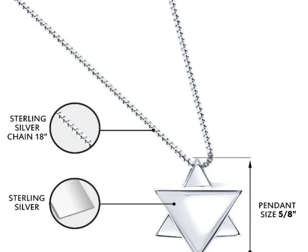 This handmade Star of David necklace measures 5/8" with 18” chain length.
