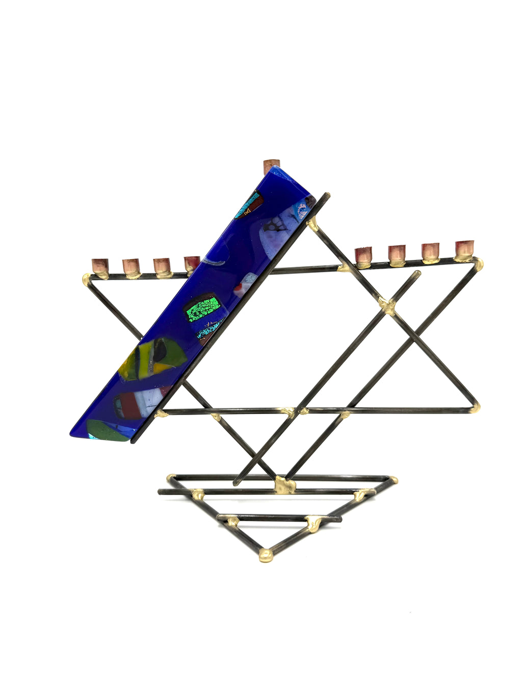 Gary Rosenthal Various Fused Glass and Metal small menorahs